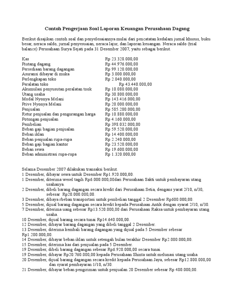 Contoh pengerjaan soal laporan keuangan perusahaan dagang student site.